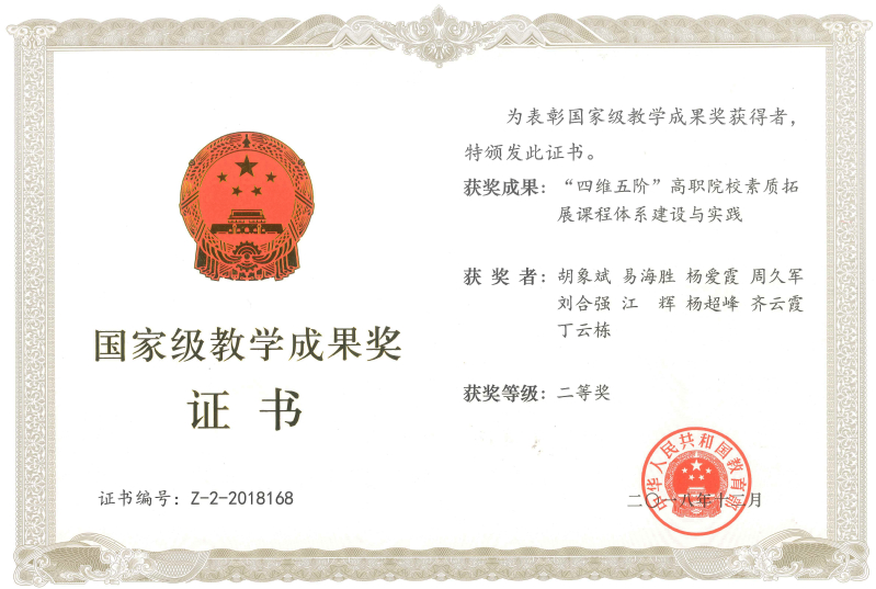 《“四维五阶”高职院校素质拓展课程体系建设与实践》获国家级教学成果奖二等奖