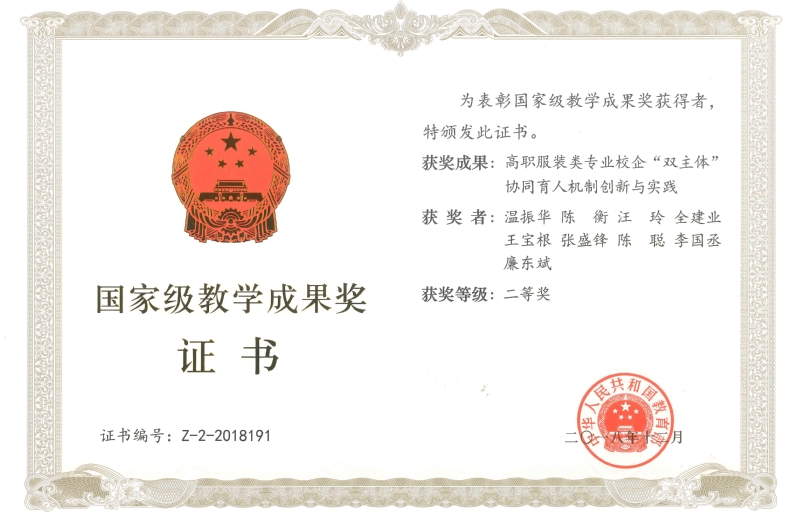 《高职服装类专业校企“双主体”协同育人机制创新与实践》获国家级教学成果奖二等奖