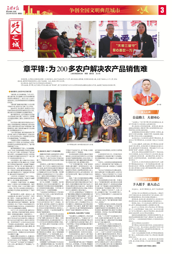 “一路走来得到过不少帮助,如今虽然我个人力量微小,也愿做一束微光温暖他人。”这是章平锋刻在心底的信念。
