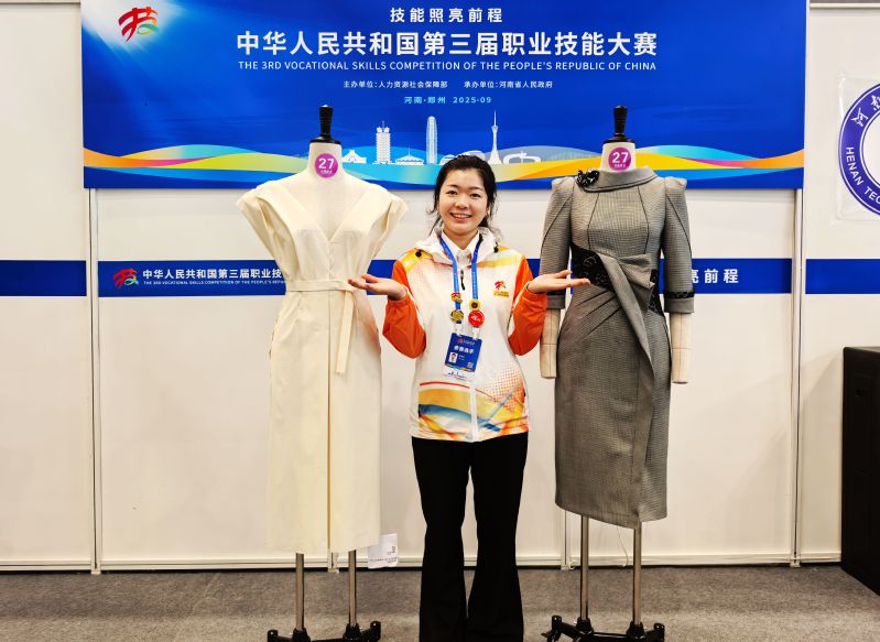 近日,第三届中华人民共和国职业技能大赛圆满收官。武汉职业技术大学时尚与传媒学院学生张依依以扎实的技艺功底、巧思迭出的创新设计与赛场上的从容表现,从全国众多顶尖选手中突围,最终以全国第七名的优异成绩斩获时装技术项目优胜奖,成功入选第48届世界技能大赛国家集训队,用实力彰显了新时代青年技能人才的专业素养与拼搏担当。