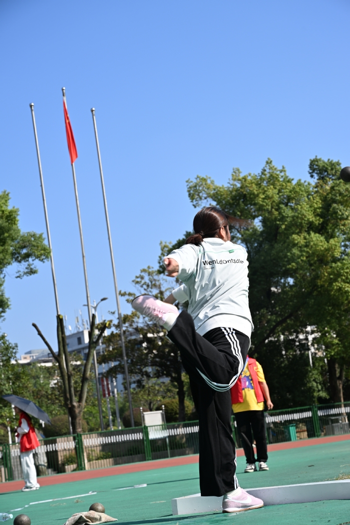 请随着镜头转场!铅球赛场藏着艺术生的小浪漫。艺术设计学院的女生们站在投掷区,屈膝、转身、双手托球,一系列动作舒展又沉稳,竟带着几分舞蹈般的韵律。