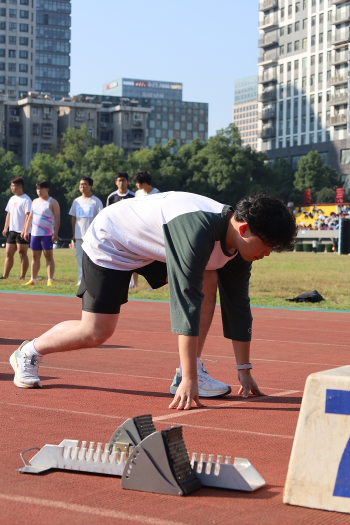 听!田径赛道上的呐喊最是动人!男子200米预赛的发令枪响,艺术设计学院的健儿们瞬间绷直身体,身姿挺拔如晨光里的青春雕像,每一寸肌肉都透着蓄势待发的力量。冲出去的刹那,他们摆臂利落得像设计稿里的流畅线条,蹬地有力如敲在鼓点上的节拍,风裹着他们的衣角向后飘,把“艺术的灵动”和“运动的刚劲”拧成了赛道上最亮眼的风景。