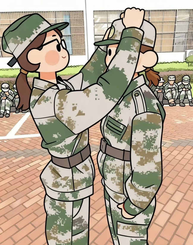 休息时,班长从水壶里倒出凉白开递过来,又掏出一颗薄荷糖:“多喝点水,难受别硬扛,跟我说就行。”后来练齐步走,她特意放慢脚步跟在我旁边,每走几步就小声提醒:“摆臂再抬一点,步频跟着前面的人。”