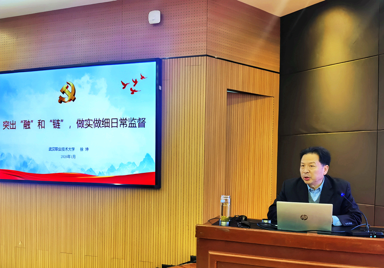 纪委书记徐坤带领全体参训人员深入学习领会二十届中央纪委五次全会精神,并以《突出“融”和“链”,做实做细日常监督》为题作辅导报告。徐坤强调,监督是纪检监察机构的基本职责、第一职责,必须坚守“抓早抓小、防微杜渐”原则,通过常态化监督及时发现问题、纠正偏差。他借用职业教育领域常见的“融““链”概念,阐释了学校纪委强化日常监督的实践路径:“融”即推动政治监督与日常监督深度融合,将监督全面融入教育教学和管理服务各环节;“链”即构建全流程闭环监督链条,紧盯“关键少数”、关键岗位和重点领域,让日常监督真正“长牙带电”。徐坤要求全体纪检干部以全会精神为根本遵循,准确把握监督职责定位,持续提升专业能力,以高质量监督为学校事业健康发展保驾护航。