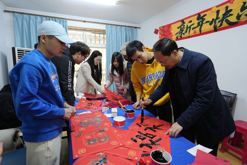 这场喜乐会将中国民俗体验、中外文化交流与特色美食共享巧妙相融,笔墨纳福、巧手裁红、共贴春联、百味同尝、温情互动等环节依次展开,留学生宿舍里处处欢声笑语,满是团圆的温馨。