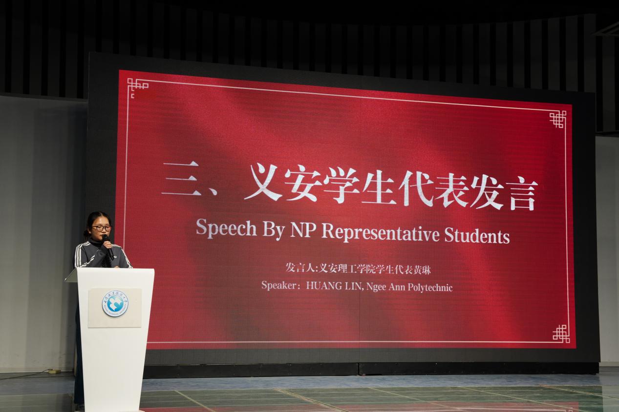 新加坡义安理工学院学生代表HUANG LIN在结业典礼上发言