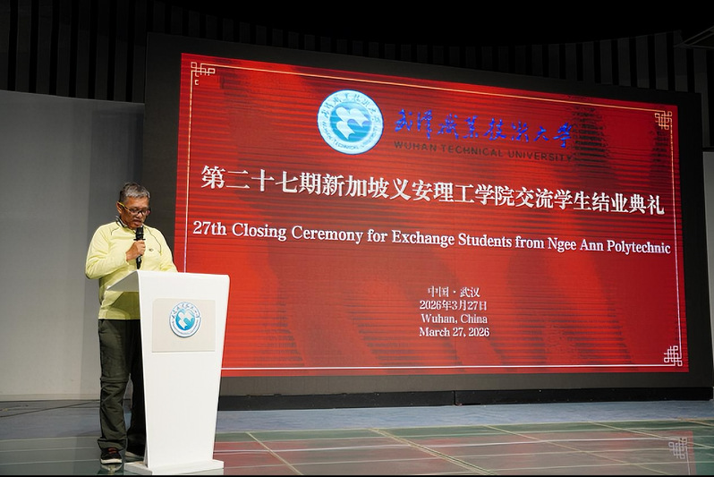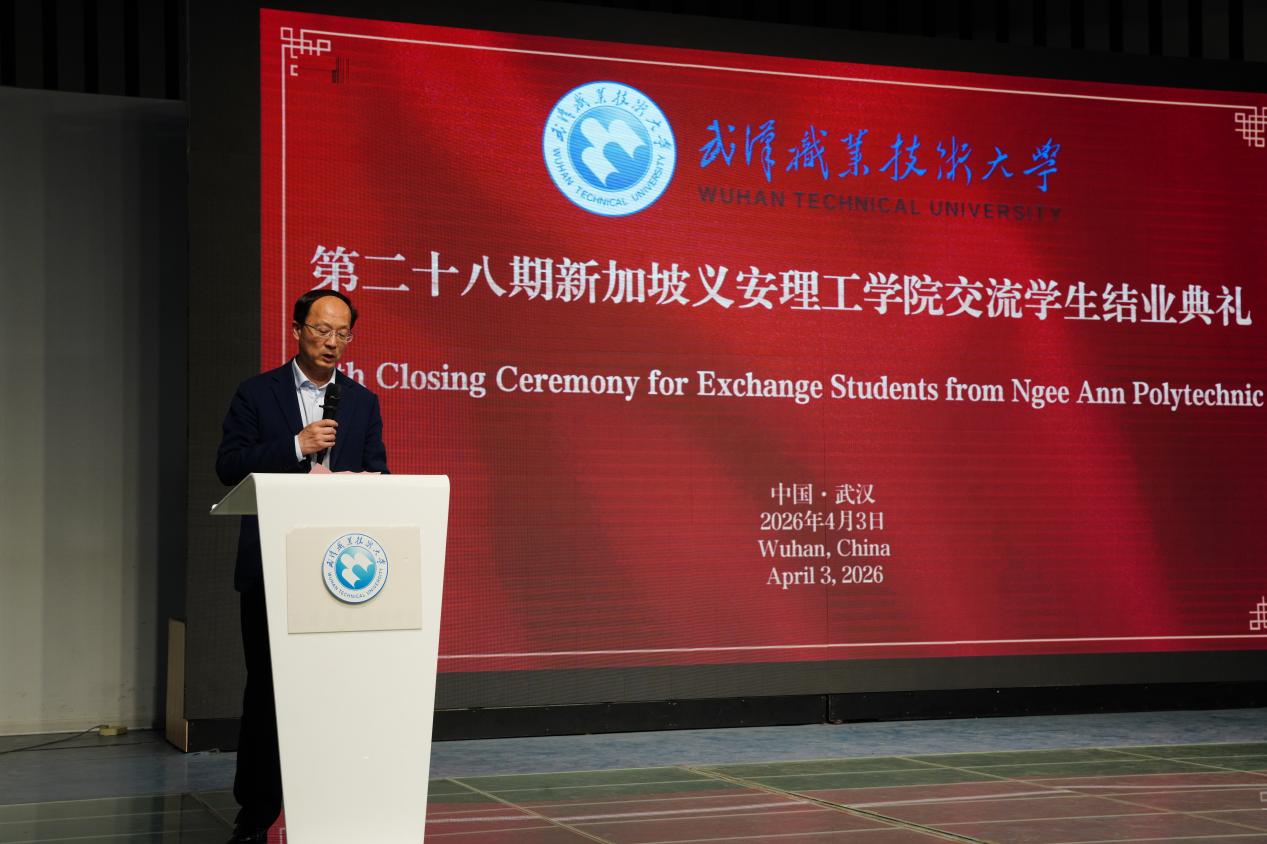 武汉职业技术大学副校长杨旭东在新加坡义安理工学院交流学生结业典礼上致辞