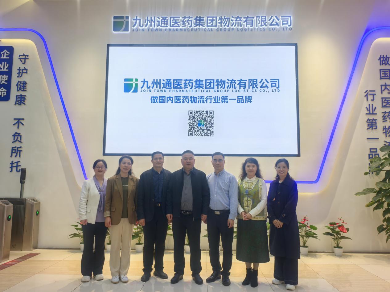 新闻网讯(通讯员 李雪平 摄影 刘晶璟)4月9日,由中国物流与采购联合会(以下简称“中物联”)牵线搭桥,副校长李仁平率数智商务学院负责人、现代物流管理专业骨干教师一行,前往九州通医药集团物流有限公司(以下简称“九州通物流”)走访调研,洽谈深入推进校企合作事宜。九州通物流董事长张青松,中物联教育培训部主任李俊峰、副主任张晓梅出席调研对接活动。